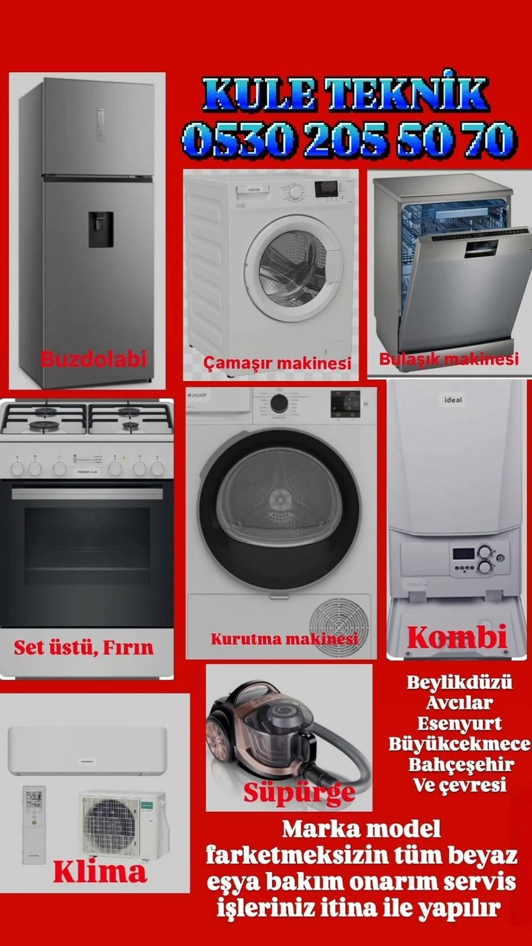 Tüm Marka model farketmeksizin beyaz eşya servisiniz bir telefon uzağınızda Avrupa yakasi(Avcılar,Beylikdüzü,Bahçeşehir,Büyükçekmece,Esenyurt) da hizmetinizdeyiz.